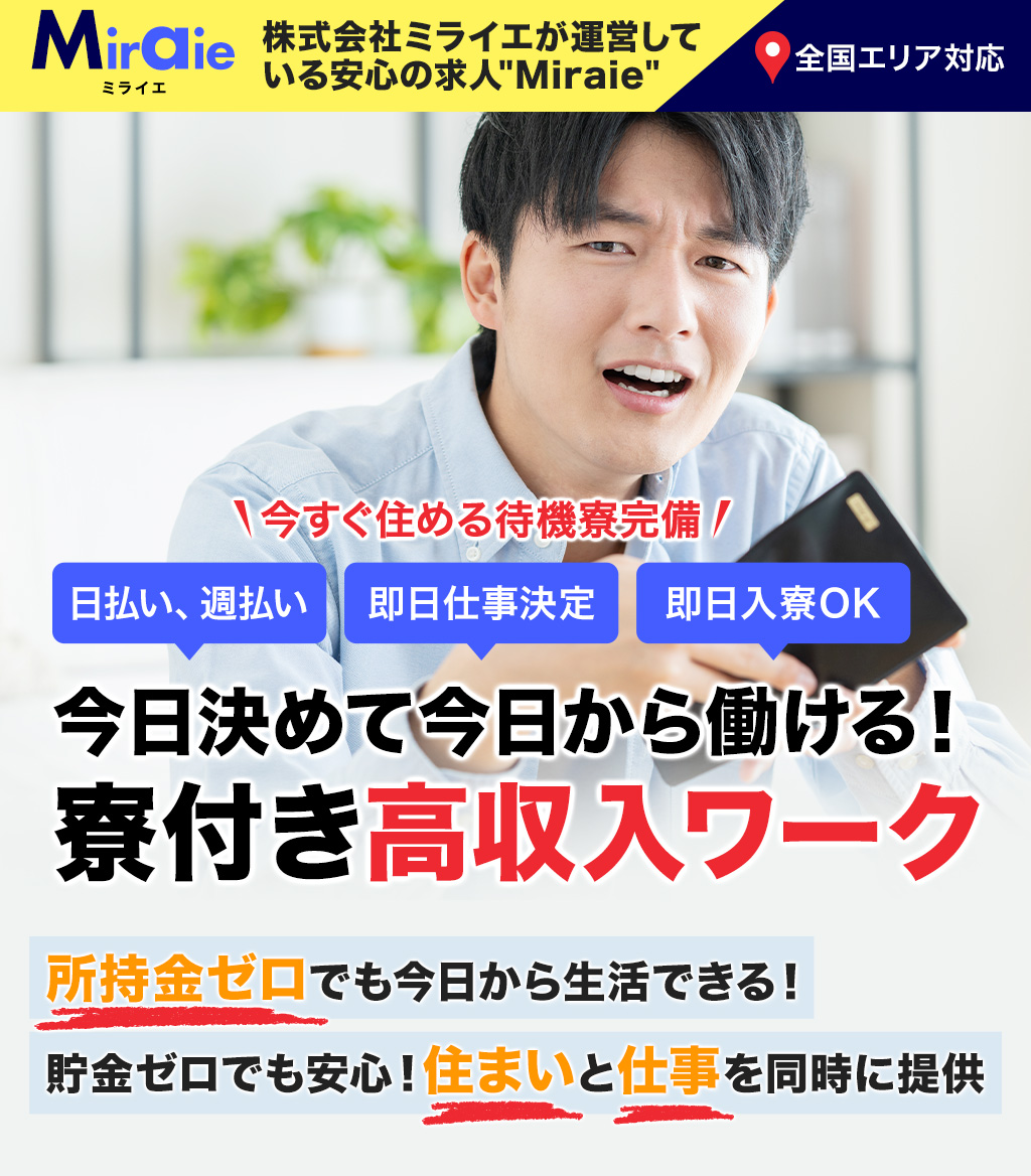 - 寮付きのお仕事がたくさん!(寮費が無料の求人もあります。)